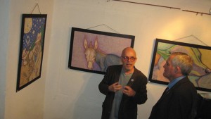 Mike E Lilly’s solo art exhibition took off on June 8th 2011 to be continued until July 4th at Chai Chai Café and Gallery in Jawalakhel. An activist artist, Mike has worked as an art instructor, a service learning educator and also for Mother Teresa and Missionaries of Charity at the home of Dying and Destitute. Currently, he is involved in helping disadvantaged children through the NGO, Sangkalpa, which he runs with his wife. Inaugurated by Dr. Kevin Rushing, Mission Director of USAID, the exhibition infuses two of Mike’s passions- art and service for the cause: Save the Animals and Help the Children. All proceeds from the sale of the artwork will be split between Animal Nepal and Sangkalpa. Animal Nepal is an organization against cruelty towards animals as can be seen in most of the artworks that portray the plight of animals like ‘Water Buffalo and Buddha’ and ‘I know what you are doing’. Other artworks mostly included children like ‘Mother and Child’ and ‘Feed the children’. The artist and his wife received the visitors, buyers and the media, the response to the event seemed in sync with the positive vibe that could be felt throughout the exhibit. -